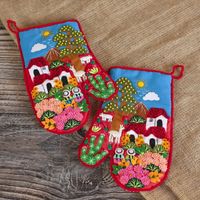 Patchwork Cotton Blend Decorative Oven Mitts Pair 'Andean Nature' Item ID: 2671689833