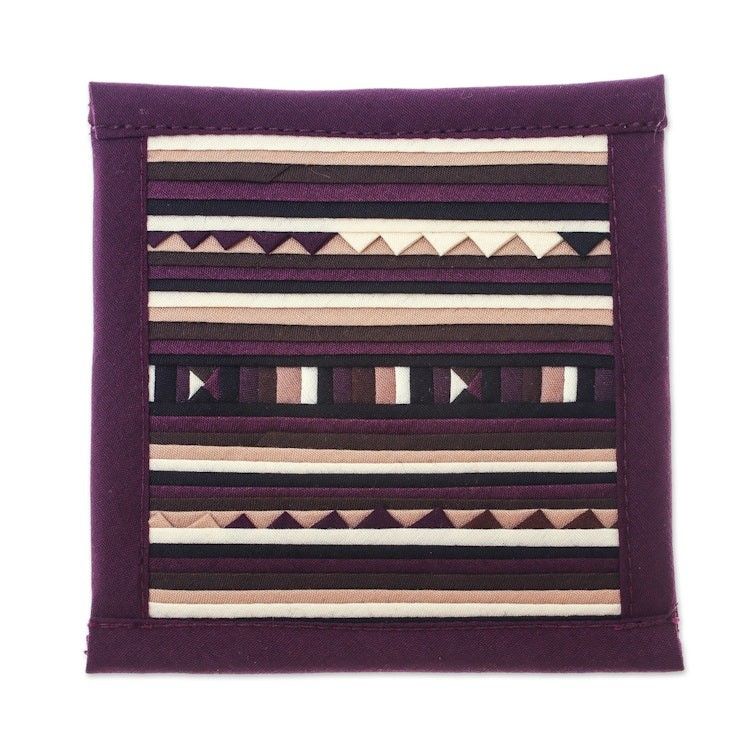 Patchwork Cotton Coasters in Purple Set of 6 'Lahu Purple' Item ID: 2671798955