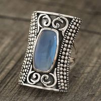 Patterned Blue Chalcedony Cocktail Ring from India 'Regal Luxury' Item ID: 2676665633