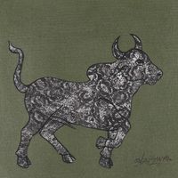 Patterned Bull Painting on Canvas 'Mighty Bull' Item ID: 2676665025