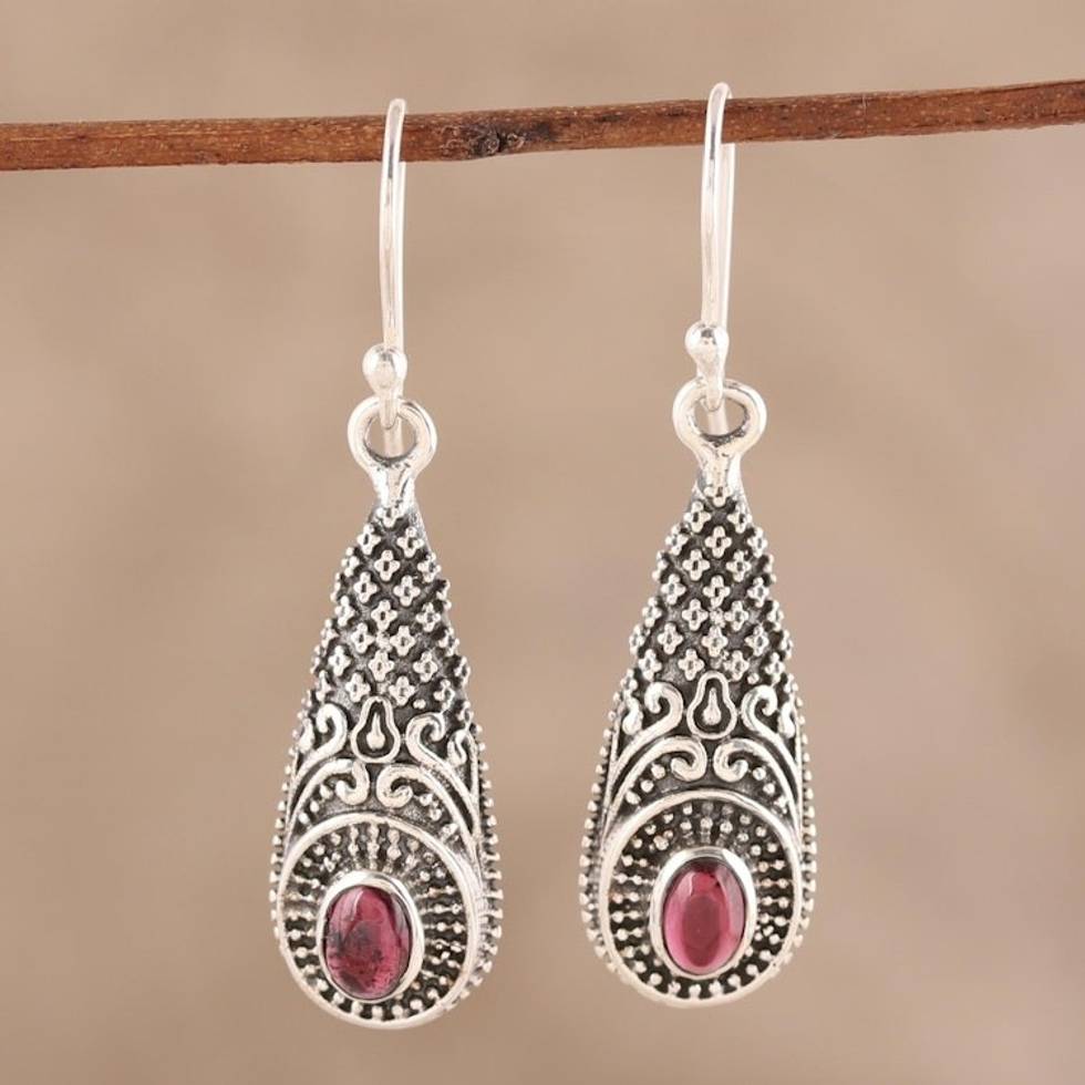 Patterned Garnet Dangle Earrings from India 'Regal Drops' Item ID: 2671792257