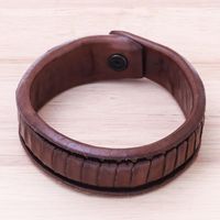 Patterned Leather Wristband Bracelet Crafted in Thailand 'The Ladder' Item ID: 2671799506