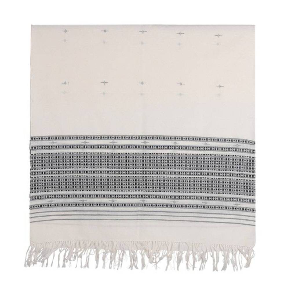 Patterned Onyx and Alabaster 100 Cotton Shawl with Fringes 'Alabaster Legacy' Item ID: 2676666093