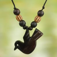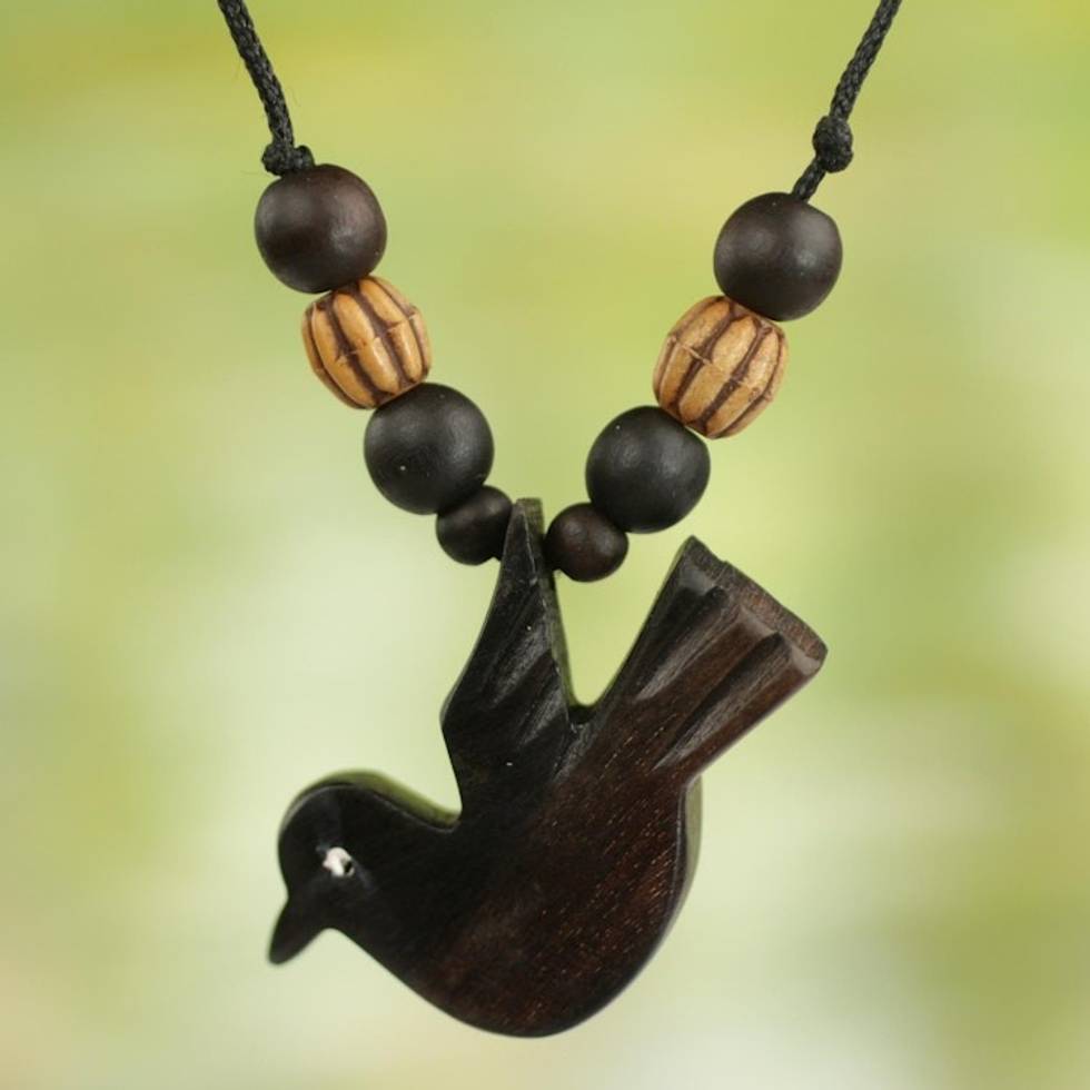 Peace Bird Artisan Crafted Wood Pendant Necklace from Ghana 'Victory Bird' Item ID: 2671803482