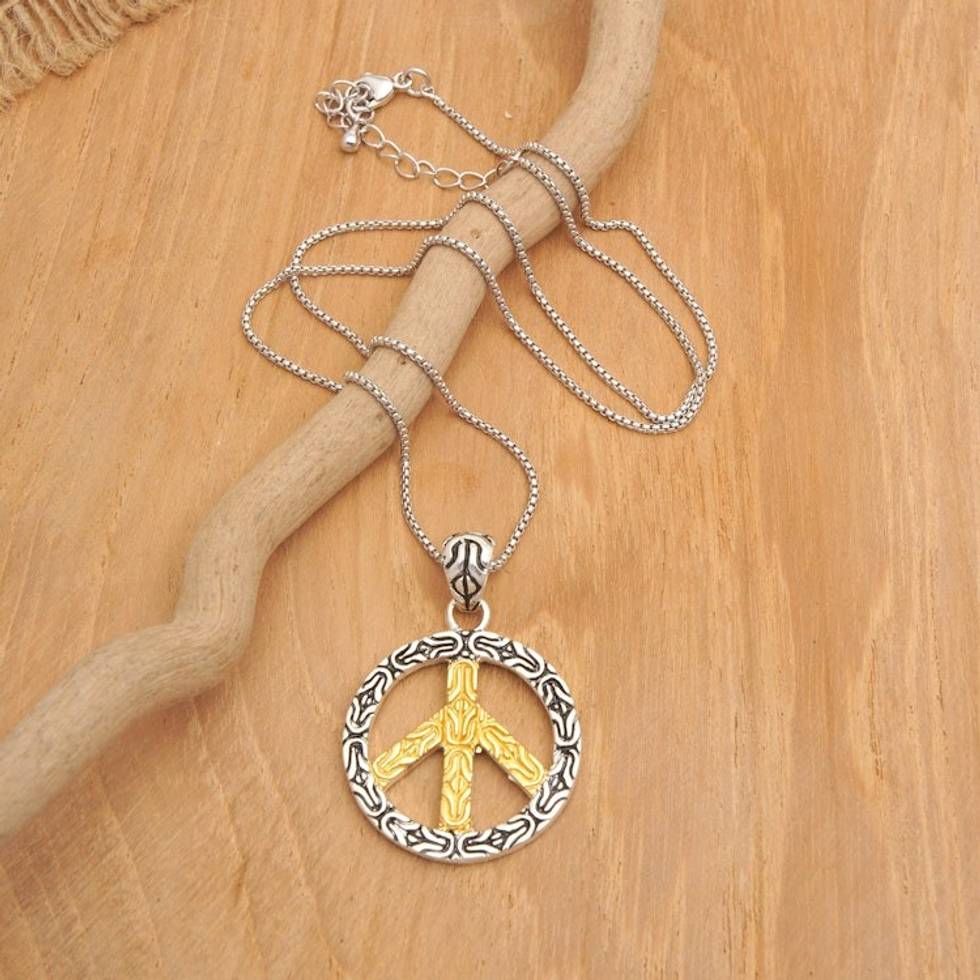 Peace Sign Gold-Accented Pendant Necklace Made in Bali 'Peace of the Universe' Item ID: 2671821129