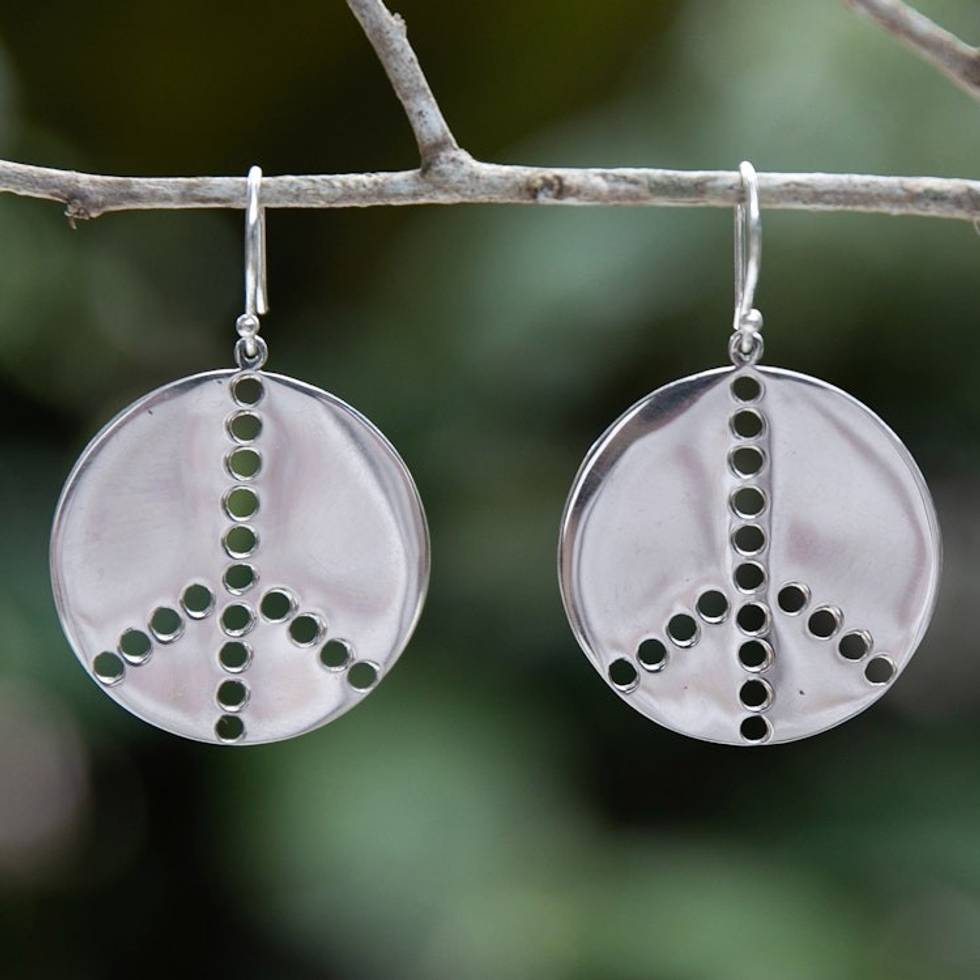 Peace-Themed Round Sterling Silver Dangle Earrings 'Peace Points' Item ID: 2671821267