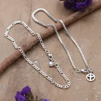 Peace-Themed Sterling Silver and Pearl Anklets Set of 2 'Pearly Peace' Item ID: 2671782349