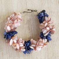 Peach and Blue Agate Chip Beaded Bracelet with Hook Clasp 'Agate Splendor' Item ID: 2671800966