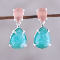 Peach and Blue Quartz Sterling Silver Dangle Earrings 'Meadow Dawn' Item ID: 2671792401