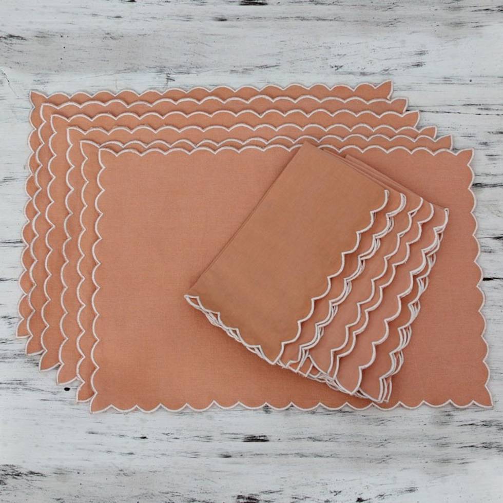 Peach Color 12-pc Cotton Placemat and Napkin Set for 6 'Peach Holiday' Item ID: 2669925614