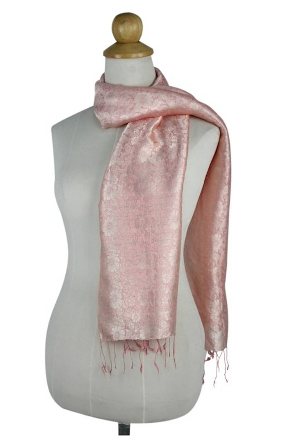 Peach Color Woven Floral Scarf from Thailand 'Peach Bouquet' Item ID: 2671802040