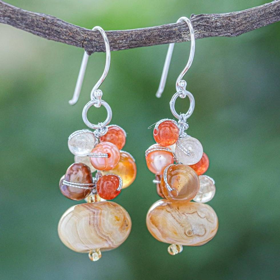 Peach Colored Multistone Beaded Earrings from Thailand 'Apricot Love' Item ID: 2669927685