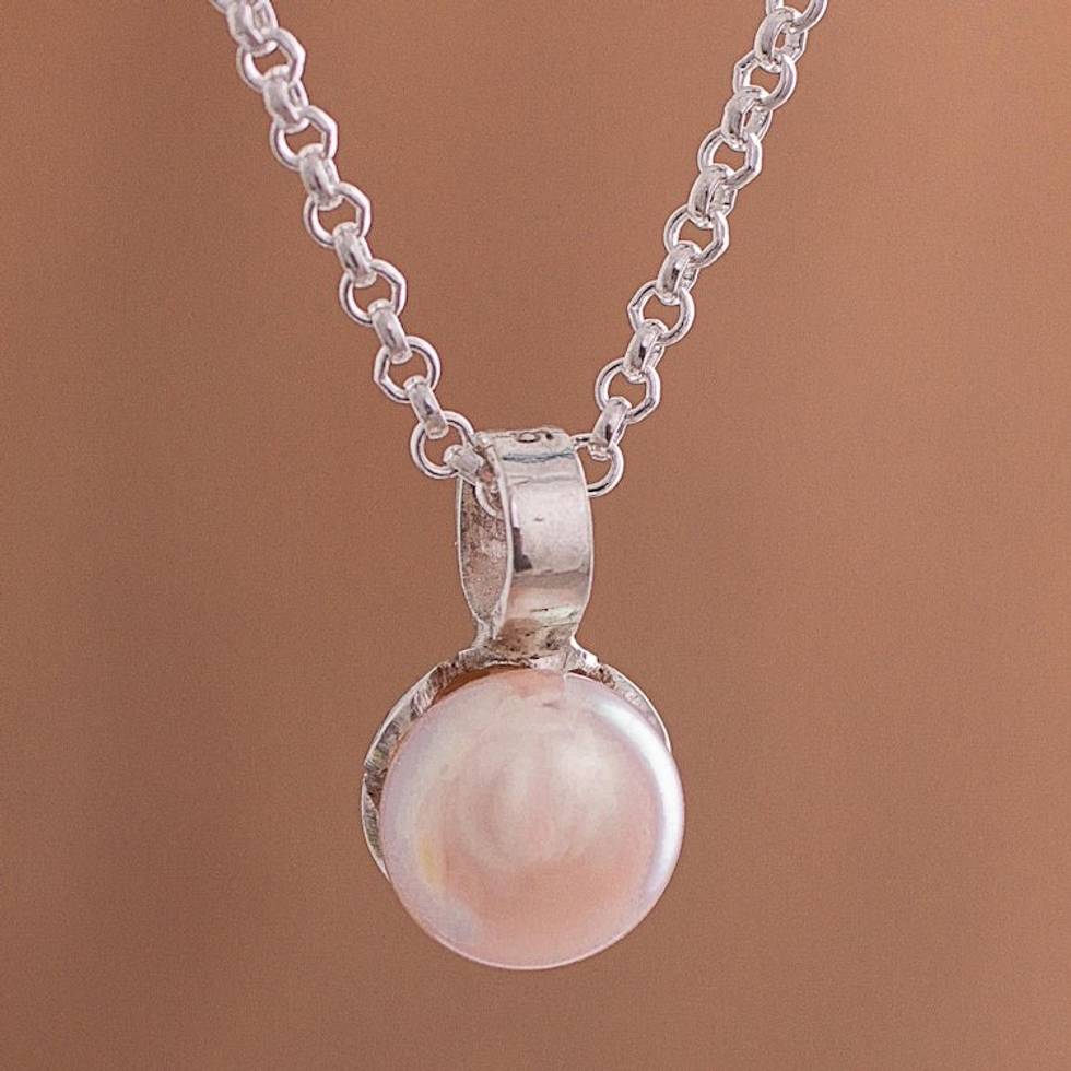 Peach Cultured Pearl and Sterling Silver Pendant Necklace 'Peach Bloom' Item ID: 2671691540