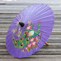 Peacock Motif Paper Parasol in Violet from Thailand 'Sunny Peacock in Violet' Item ID: 2671798805