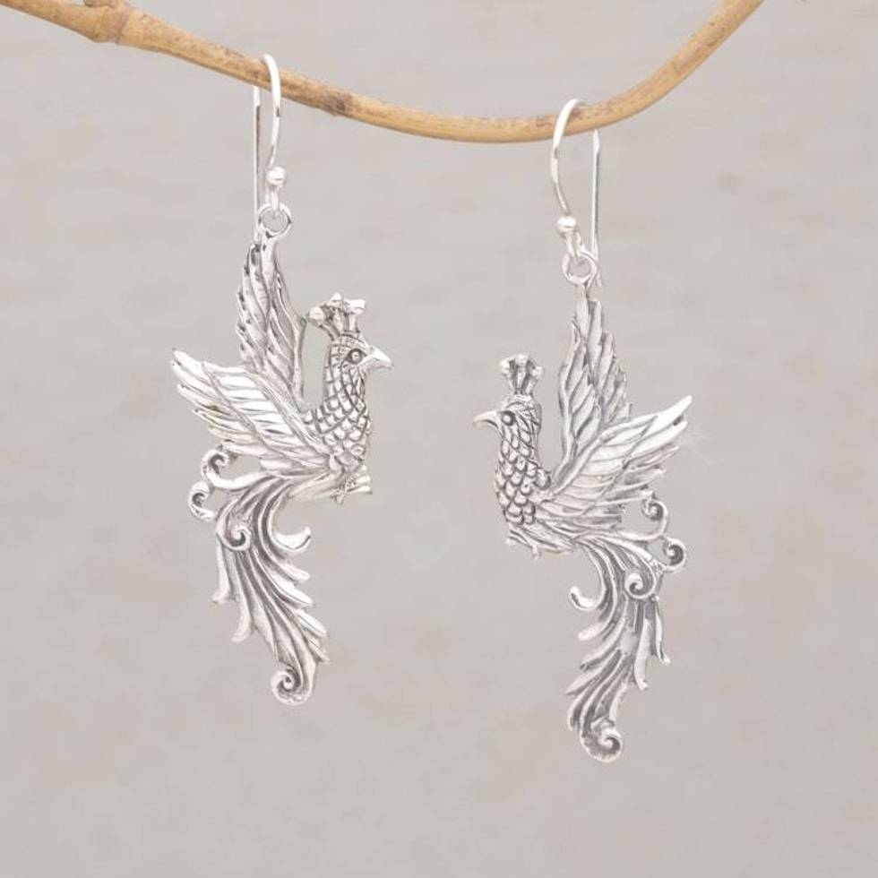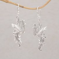 Peacock Motif Sterling Silver Dangle Earrings 'Merak Majesty' Item ID: 2676659016