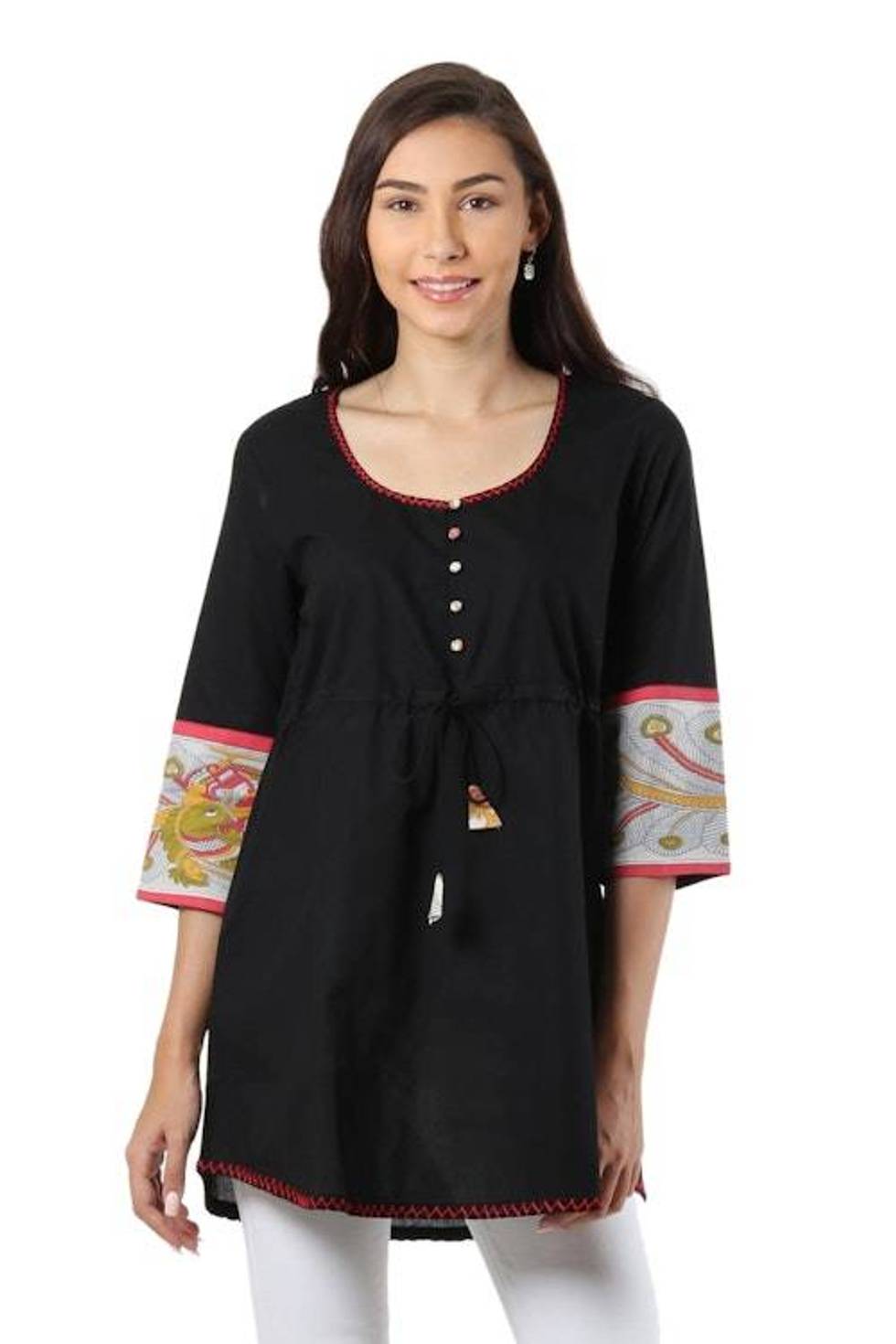 Peacock Printed Cotton Tunic from India 'Midnight Peacock' Item ID: 2676665944