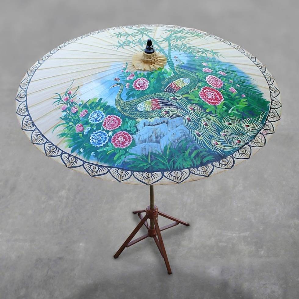 Peacock-Themed Cotton and Bamboo Parasol in Buff 'Heavenly Peacocks' Item ID: 2671799604