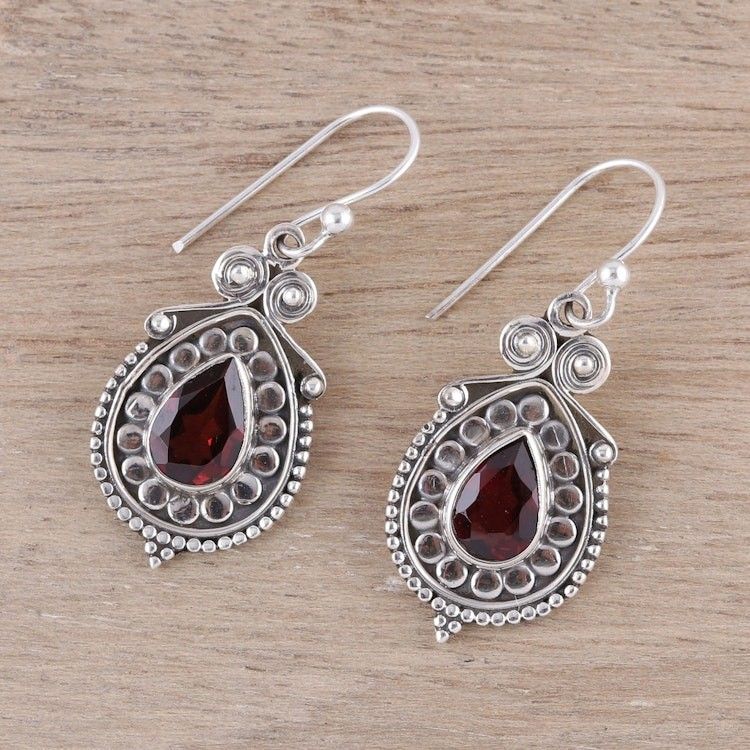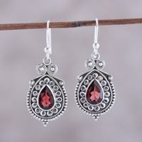 Pear Garnet Dangle Earrings from India 'Classic Style' Item ID: 2671792400