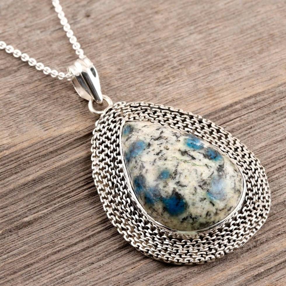 Pear-Shaped Bezel Set Blue Jasper Silver Pendant Necklace 'Appealing Charm' Item ID: 2671622589