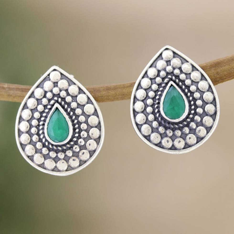 Pear-Shaped Green Onyx Drop Earrings Crafted in India 'Memories of the Palace' Item ID: 2671786903