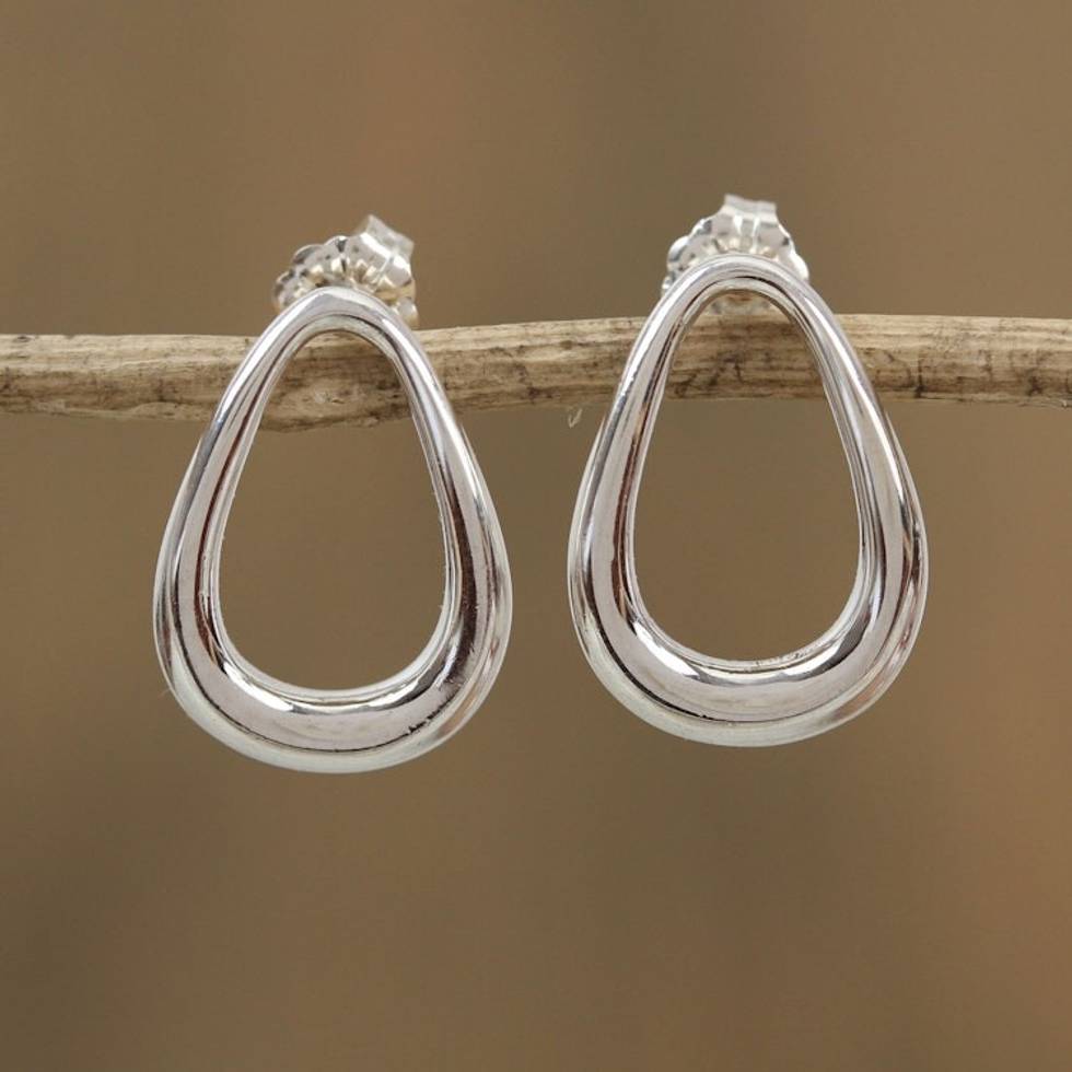 Pear-Shaped Sterling Silver Drop Earrings from Mexico 'Modern Pears' Item ID: 2671808708