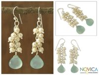 Pearl and chalcedony cluster earrings 'Aqua Shimmer' Item ID: 2671794563