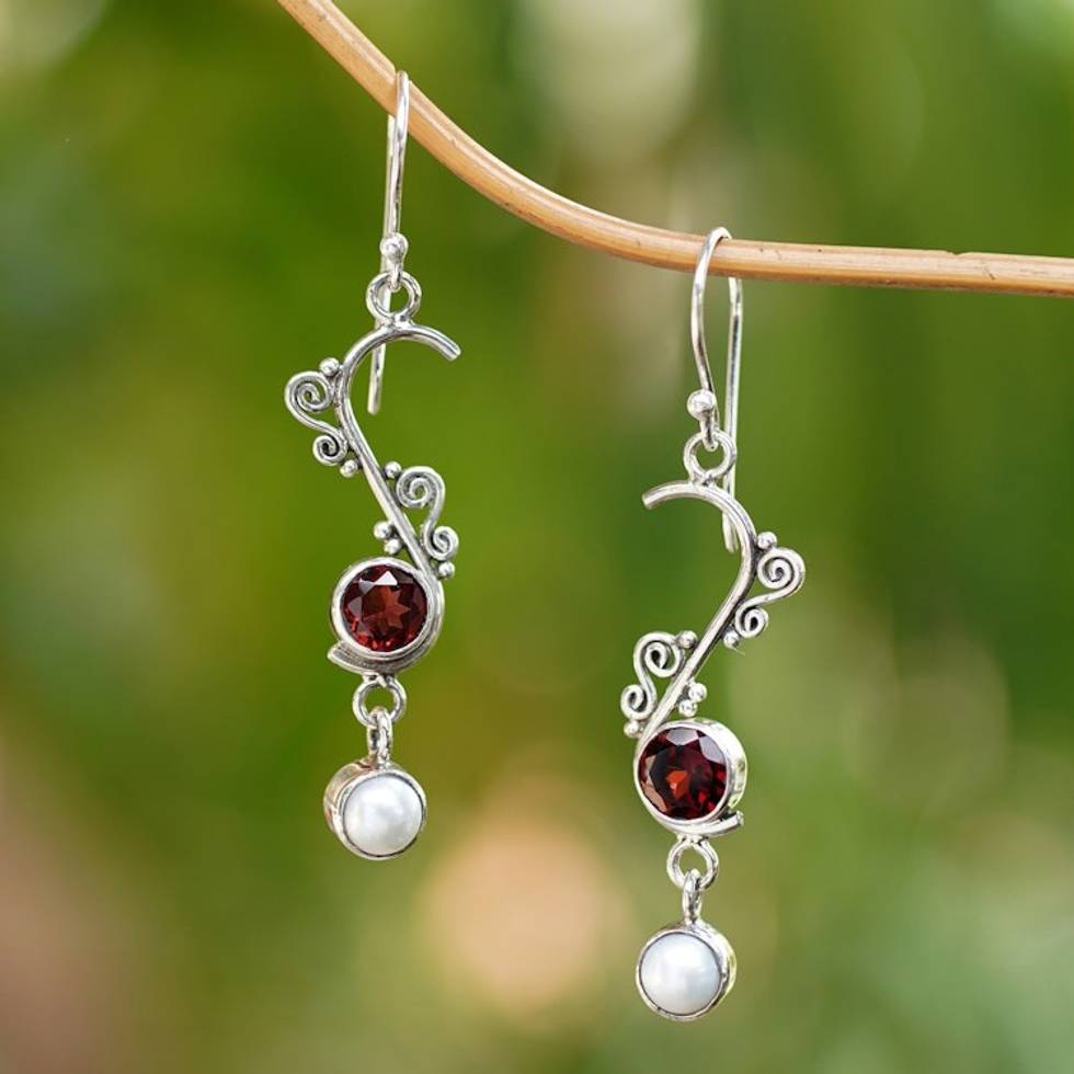 Pearl and garnet dangle earrings 'Graceful' Item ID: 2671699660
