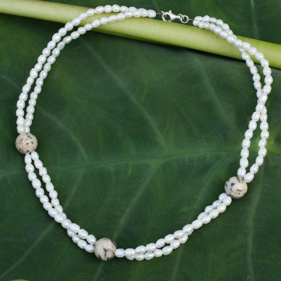 Pearl and jasper strand necklace 'Ocean's Gift' Item ID: 2671802923