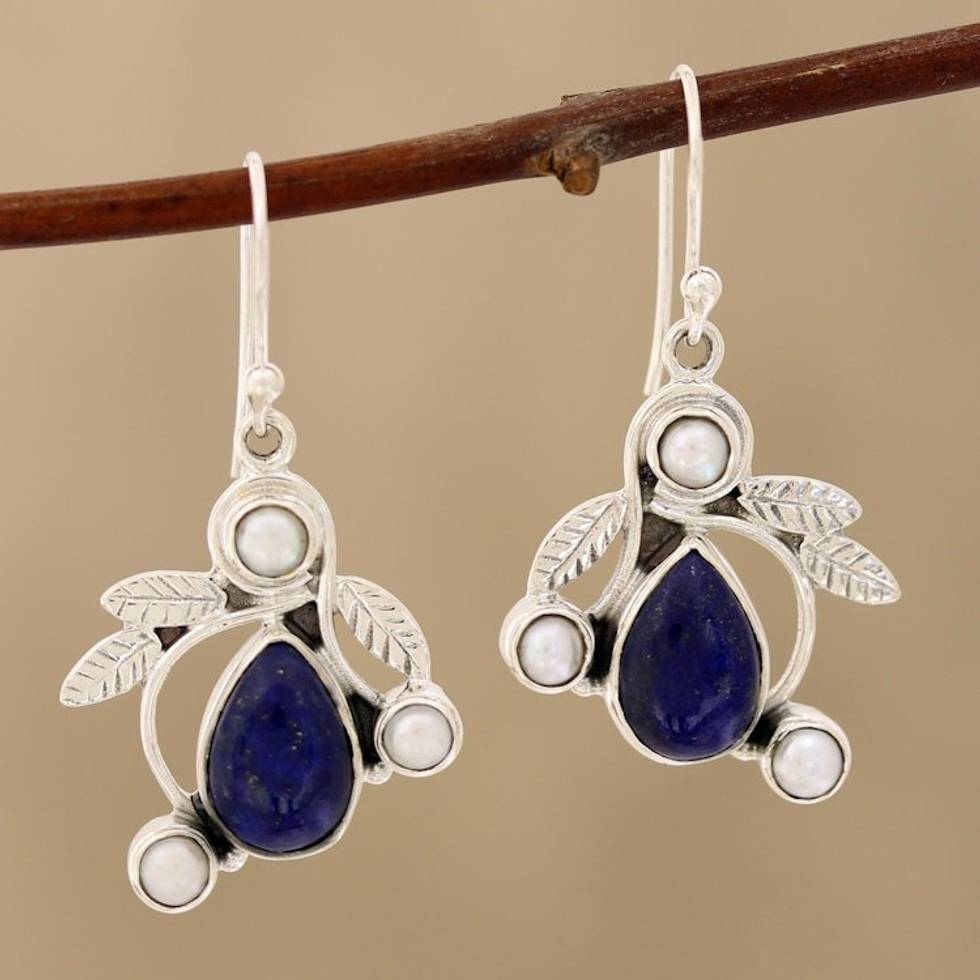 Pearl and Lapis Lazuli Earrings Sterling Silver Jewelry 'Tropical Fruit' Item ID: 2671619830
