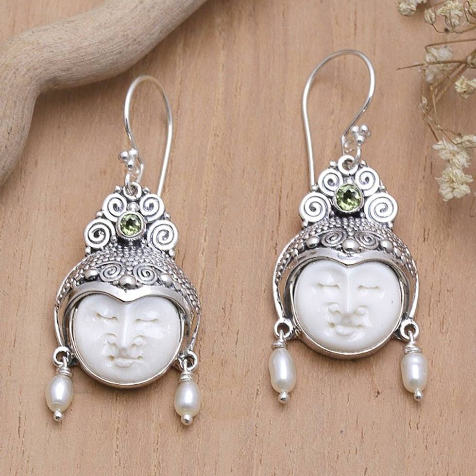 Pearl and Peridot Carved Bone Earrings 'Day Dreamers' Item ID: 2671820801