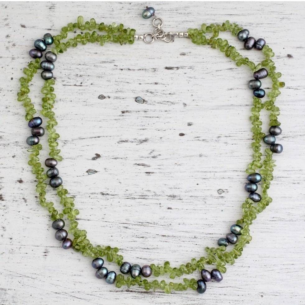 Pearl and peridot strand necklace 'Opulent Lime' Item ID: 2671794848