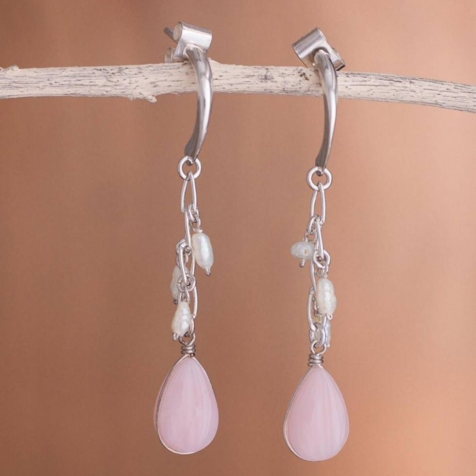 Pearl and Pink Opal Dangle Earrings from Peru 'Sweet Perfection' Item ID: 2671689473
