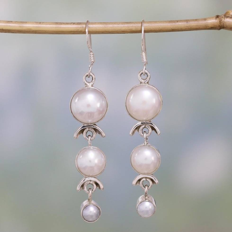 Pearl Earrings Handcrafted Bridal Sterling Silver Jewelry 'Three Moons' Item ID: 2671794988