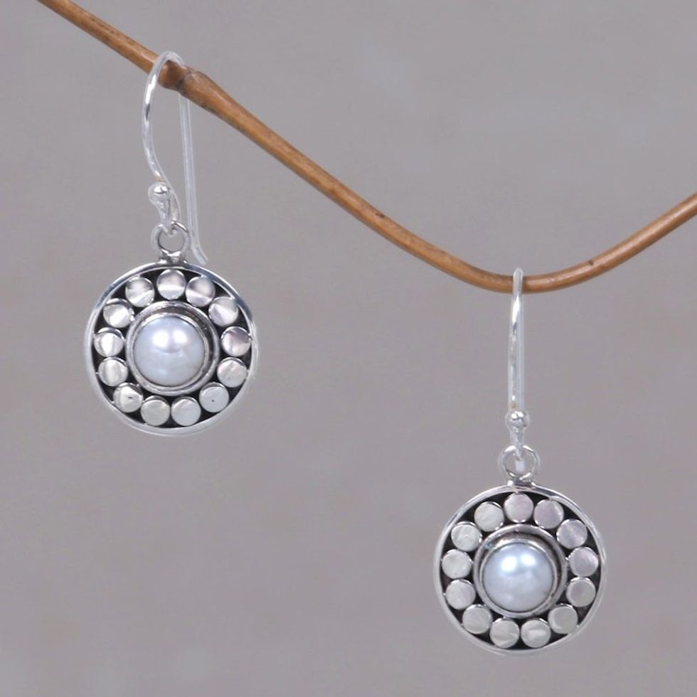 Pearl Sterling Silver Dangle Earrings 'Sunny Day' Item ID: 2669920970