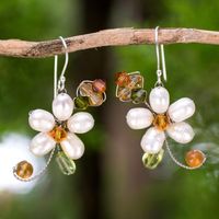 Pearls and Gems Earrings Artisan Crafted Thai Jewelry 'Frangipani Glam' Item ID: 2671802552