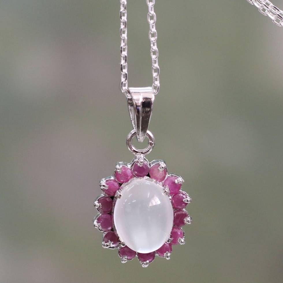 Pendant Necklace with Ruby and Moonstone 'Love and Devotion' Item ID: 2669924335
