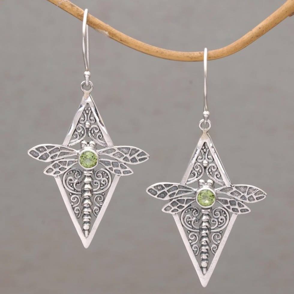 Peridot and 925 Silver Dragonfly Dangle Earrings from Bali 'Dragonfly Diamonds' Item ID: 2671821551
