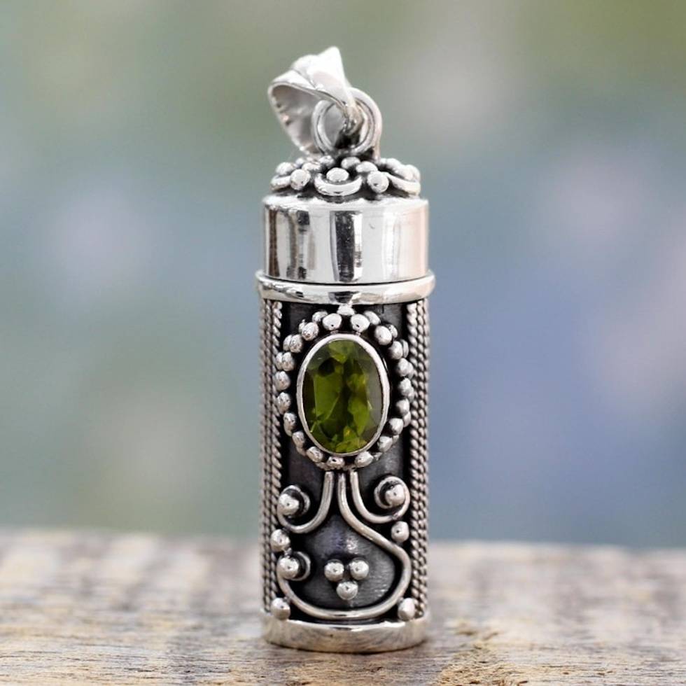 Peridot and 925 Silver Prayer Box Pendant from India 'Calmness' Item ID: 2669925644