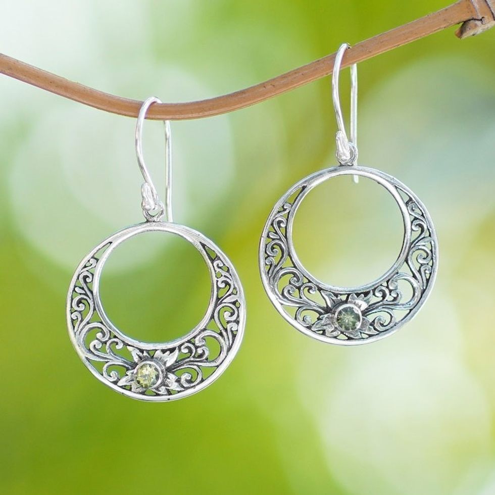 Peridot and 925 Sterling Silver Dangle Earrings from Bali 'Crescent Spirals' Item ID: 2671734872