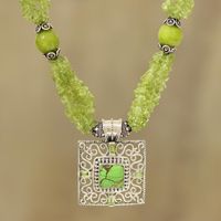 Peridot and Composite Turquoise Beaded Pendant Necklace 'Verdant Square' Item ID: 2671789578