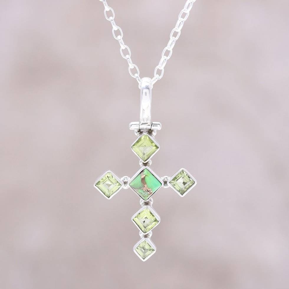 Peridot and Composite Turquoise Cross Pendant Necklace 'Verdant Cross' Item ID: 2671790261