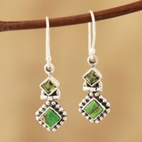 Peridot and Composite Turquoise Dangle Earrings from India 'Beautiful Delight' Item ID: 2671789266