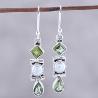 Peridot and Cultured Pearl Dangle Earrings from India 'Classic Fusion' Item ID: 2671792787