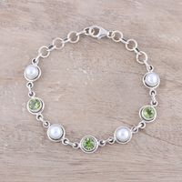 Peridot and Cultured Pearl Link Bracelet from India 'Elegant Glitter' Item ID: 2669943532