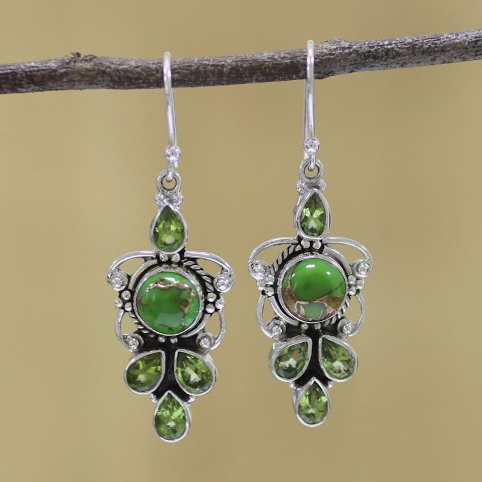 Peridot and Green Composite Turquoise 925 Silver Earrings 'Glittering Green' Item ID: 2669925294