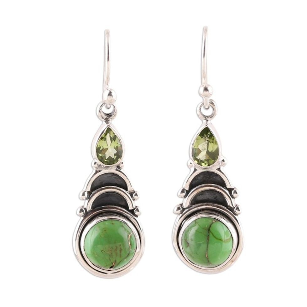 Peridot and Green Composite Turquoise Dangle Earrings 'Verdant Arches' Item ID: 2671621297