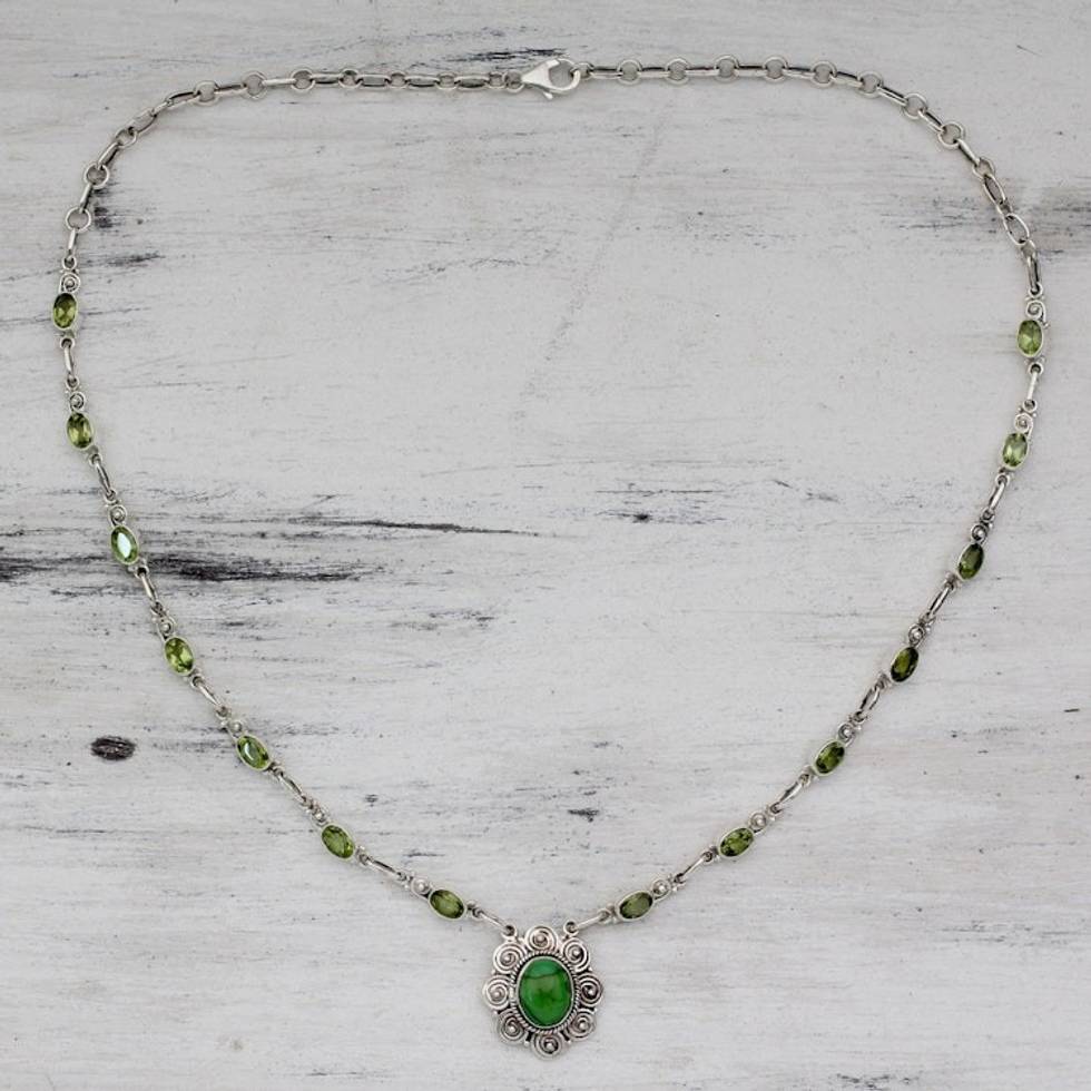 Peridot and Silver 925 Necklace with Composite Turquoise 'Woodland Halo' Item ID: 2671620172