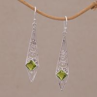 Peridot and Sterling Silver Dangle Earrings from Bali 'Green Ties' Item ID: 2671733640