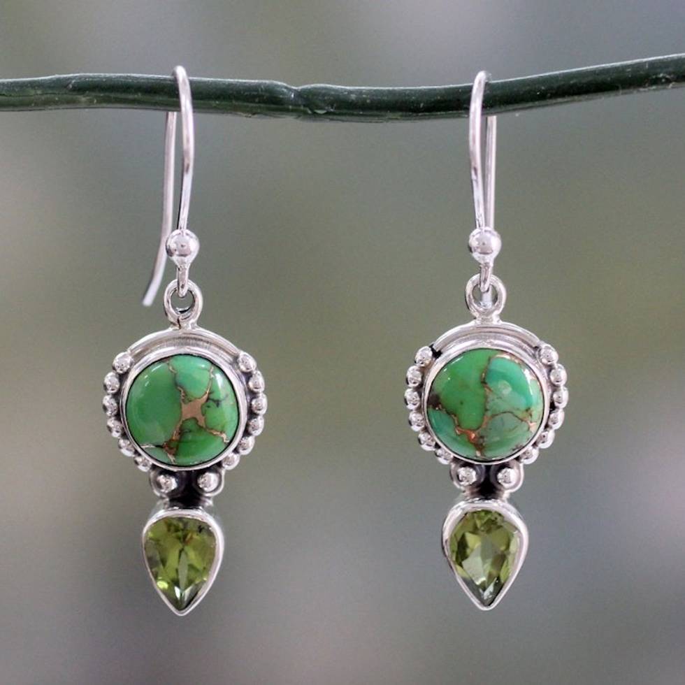 Peridot and Sterling Silver Dangle Earrings from India 'Spring Green' Item ID: 2671621535