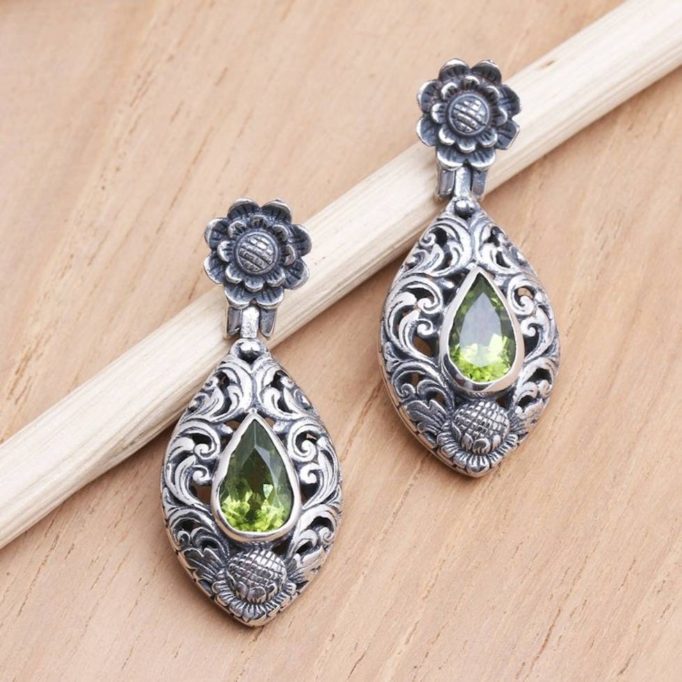 Peridot and Sterling Silver Floral-Motif Dangle Earrings 'Spring Grass' Item ID: 2671745249
